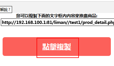 1.上半部是一段文字超連結,您可以點擊紅色按鈕,把連結記起來,再試著貼到社群平台或通訊軟體做推廣商品及拉人推廣註冊,若發現沒東西可以貼,可能是瀏覽器或手機環境的問題,此時只能再回到原本的頁面,試著直接反白文字輸入框裡面的所有文字,再按複製,準備貼到社群平台或通訊軟體
