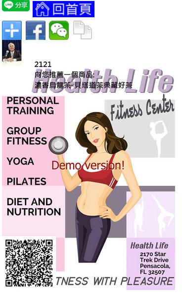 2.下半部則是針對前一頁商品,商家在後台所上傳針對前一頁商品的商品推廣海報,按了商品推廣海報後,下一個頁面則會由網站生成一個有會員大頭貼及推廣 QR Code 的海報,只要將此海報轉傳或分享到社群平台或通訊軟體裡面即可